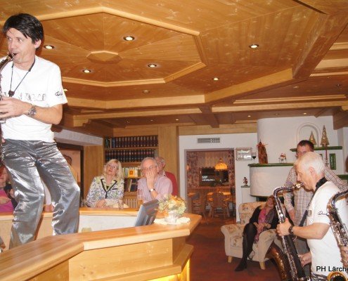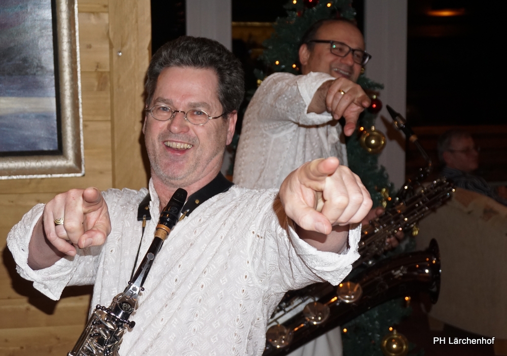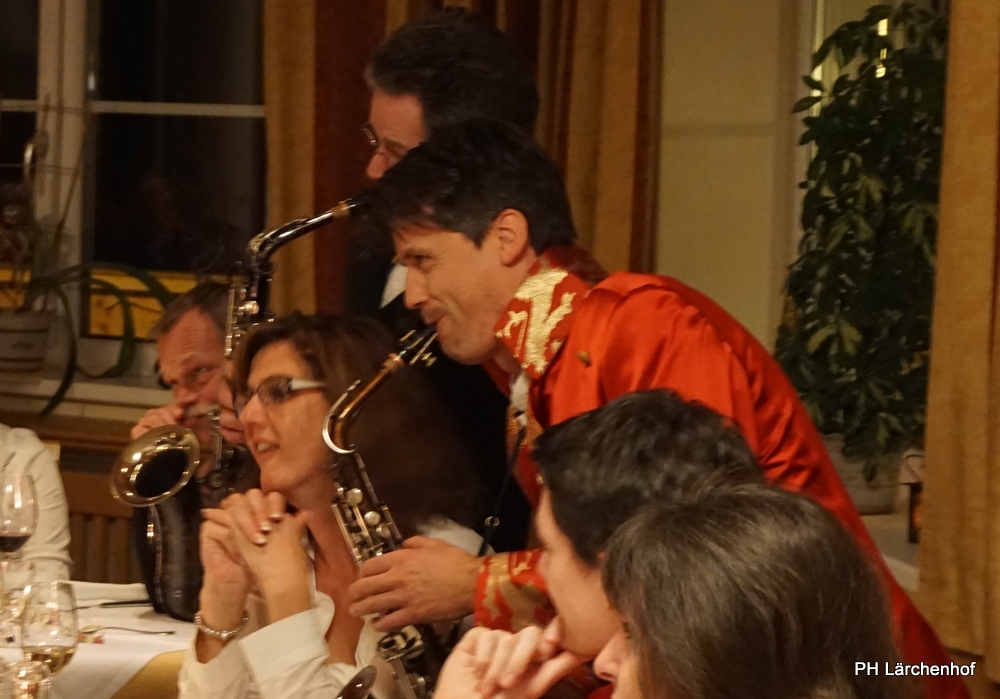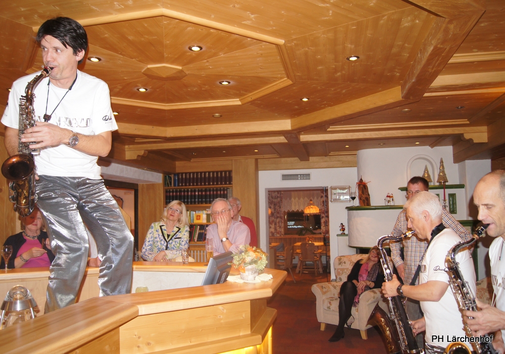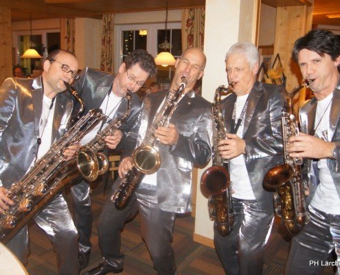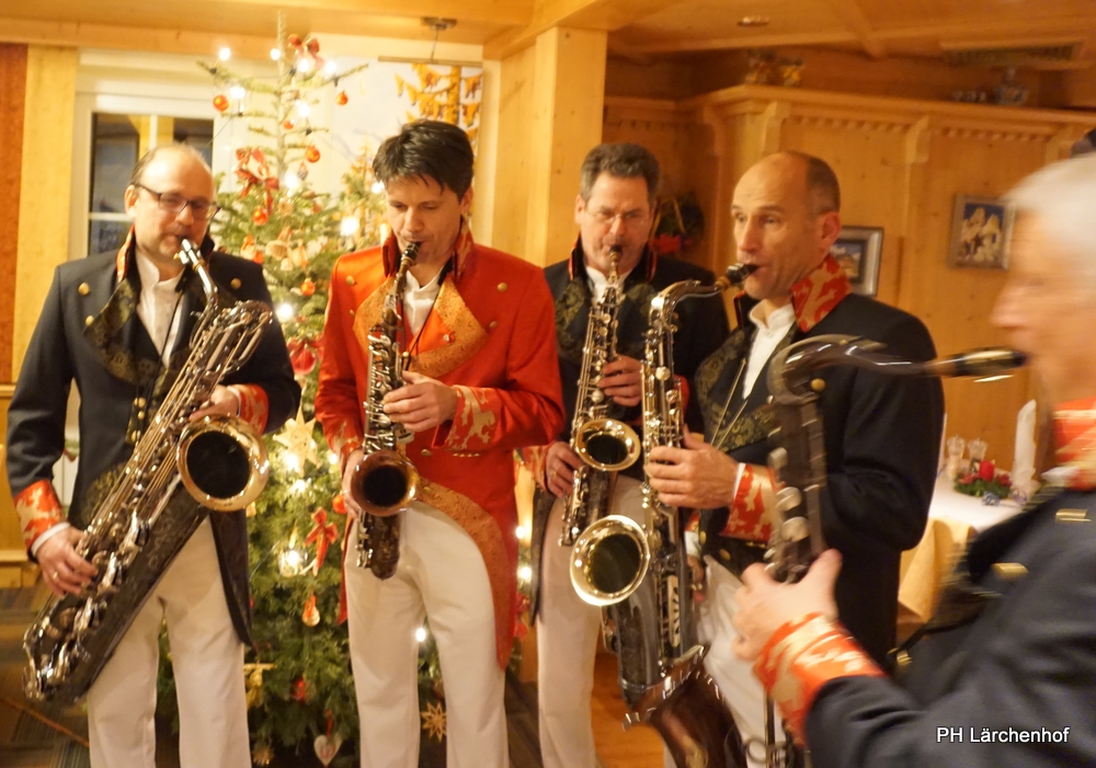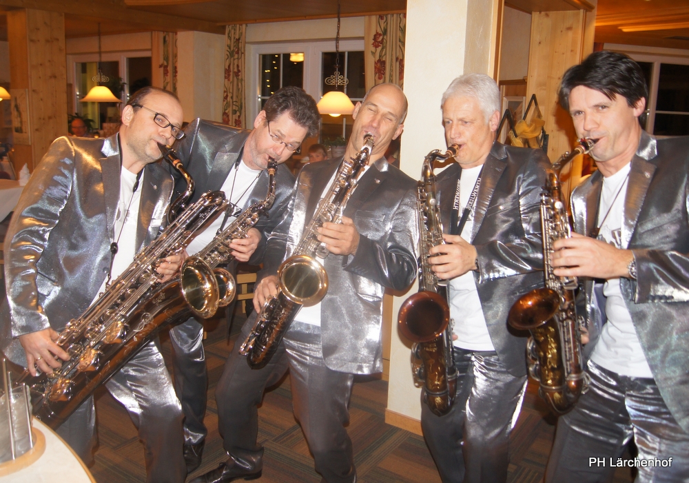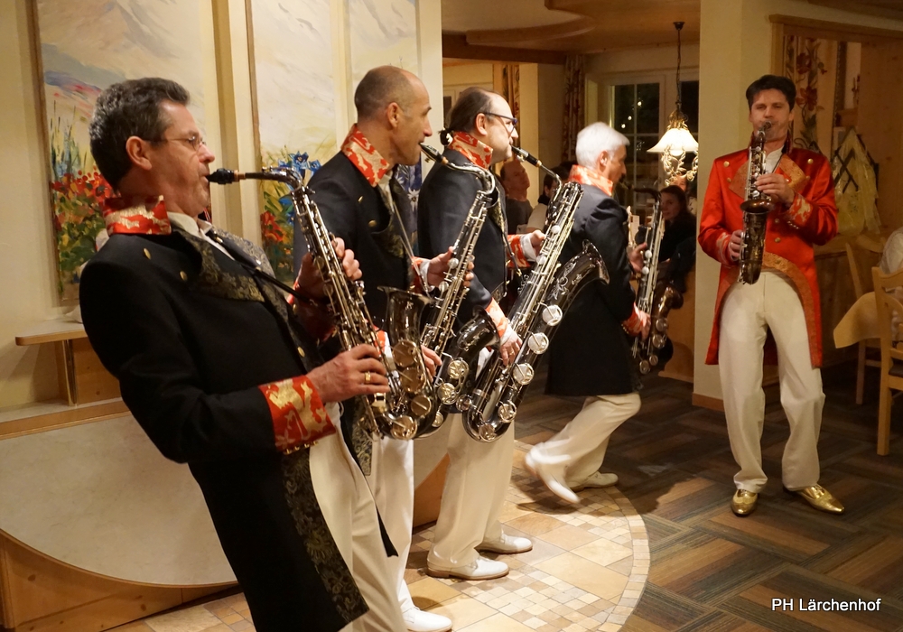 Beswingt ins Neue Jahr heisst es auch heuer wieder bei uns im Hotel Lärchenhof. Sax Royal – das nicht genormte Saxophon Ensemble, so die Eigenbezeichnung des Qunitetts, bietet zum Auftakt für 2017 die bewährt perfekte Untermalung zum 6-gängigen Neujahrs-Galadinner.